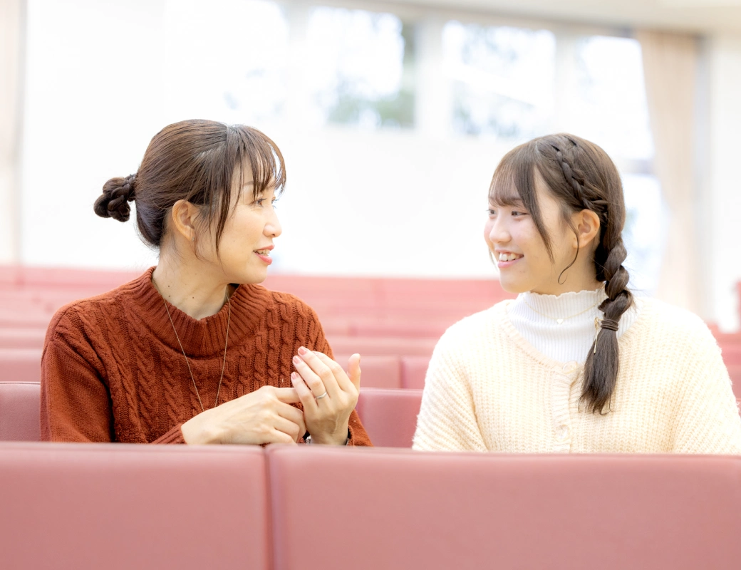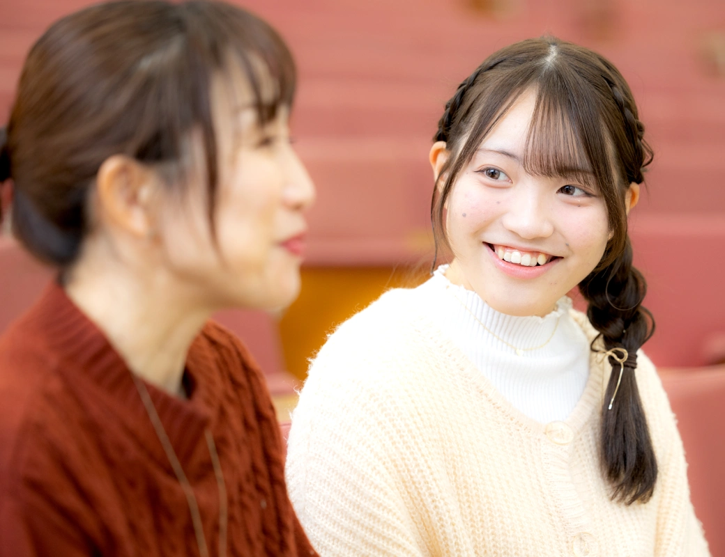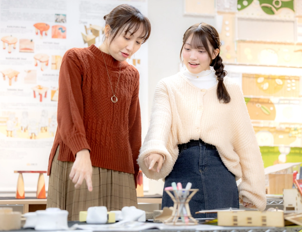 デザインを学ぶ中で、理解できないことや、一人ではうまくいかないことがたくさんあるの。そういう時に、せっかく先生に教えてもらえるチャンスがあるんだから、積極的に聞きに行きたいと思うんだよね。サークルの先輩からも、「デザイン学科は、自分から積極的に動いた方がいいよ」って、アドバイスをもらえたの。
